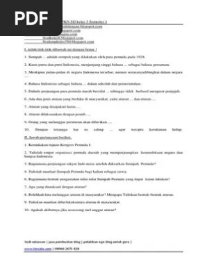 Download dan dapatkan soal latihan ulangan uas ganjil pkn kelas 3 semester 1 gasal sesuai ktsp pg, isian dan essay, tahun 2015.